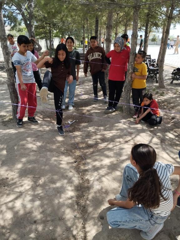 Yüz Yüze 100 Çocuk Oyunu Projesi kapsamında okulumuz öğrencileri Kaleli Yakan Top, İstop, Saklambaç, Sandalye Kapmaca, İsim Şehir, Kabak Oyunu , Mergenci gibi geleneksel oyunlarımızı eğlenerek öğreniyor.